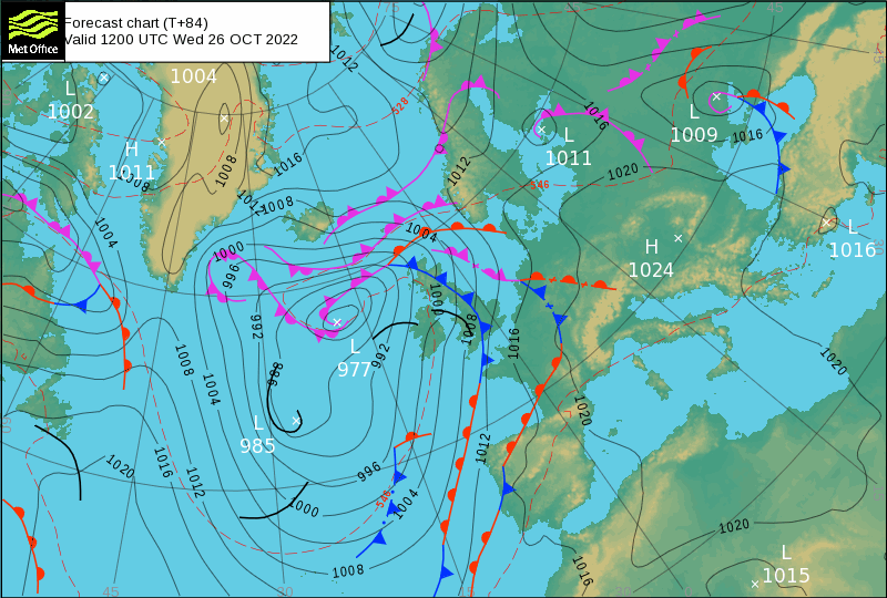 Synoptická situace ve středu v poledne - počasí u nás bude od západu ovlivňovat slábnoucí frontální systém