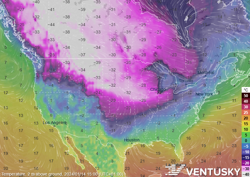 Vpád arktických mrazů čeká USA, teploty v několika velkých státech klesnou pod -30 °C