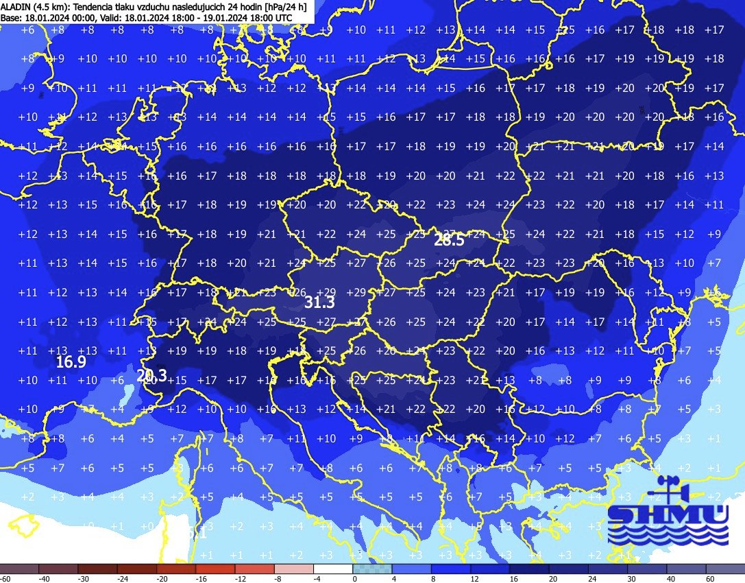 V následujících hodinách rychle poroste tlak vzduchu, za dva dny se změní až o 40 hPa