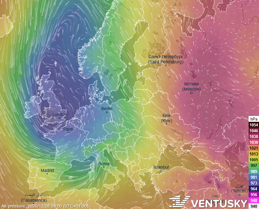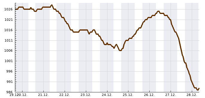 Tlak vzduchu prudce klesá, bude nejnižší z celého roku