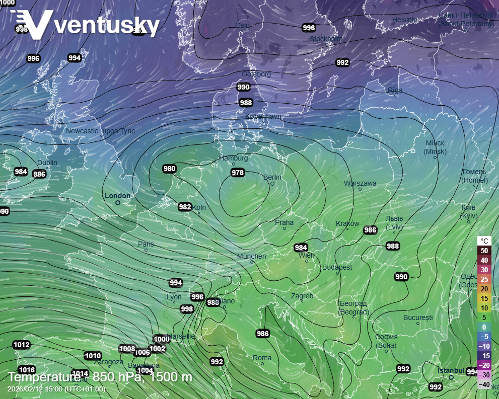 Obr. 4 Poloha tlakové níže Nils nad Polskem v pátek okolo 11 UTC