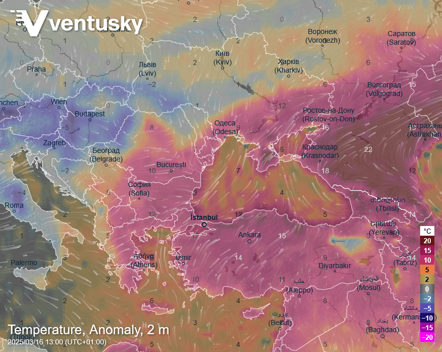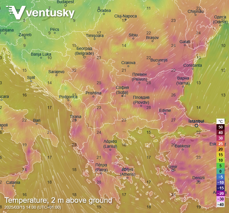 Sobotní odpolední teploty můžou v nížinách kolem Dunaje v Rumunsku a Bulharsku přesáhnout i tropickou třicítku