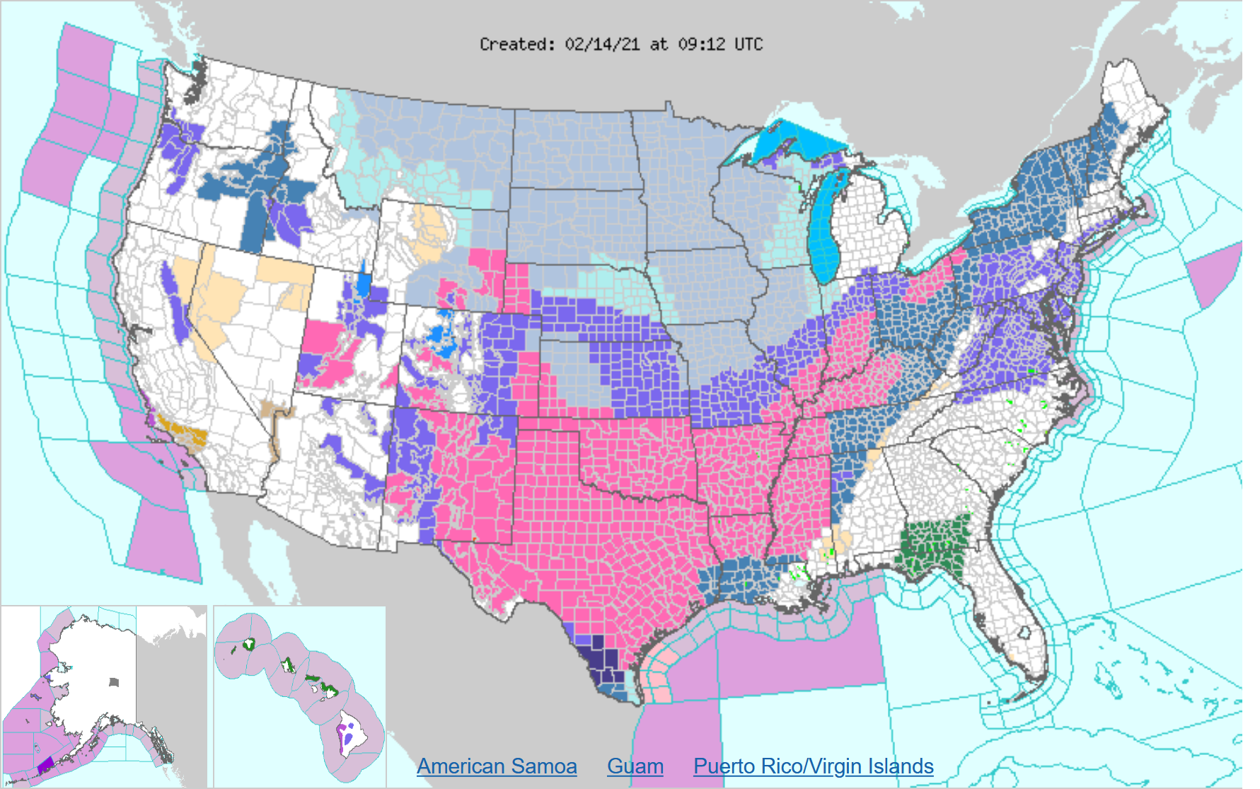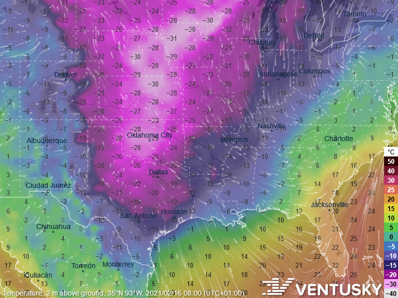 Teplota v USA v noci z pondělí na úterý - jazyk arktického vzduchu se dostane nebývale daleko k jihu