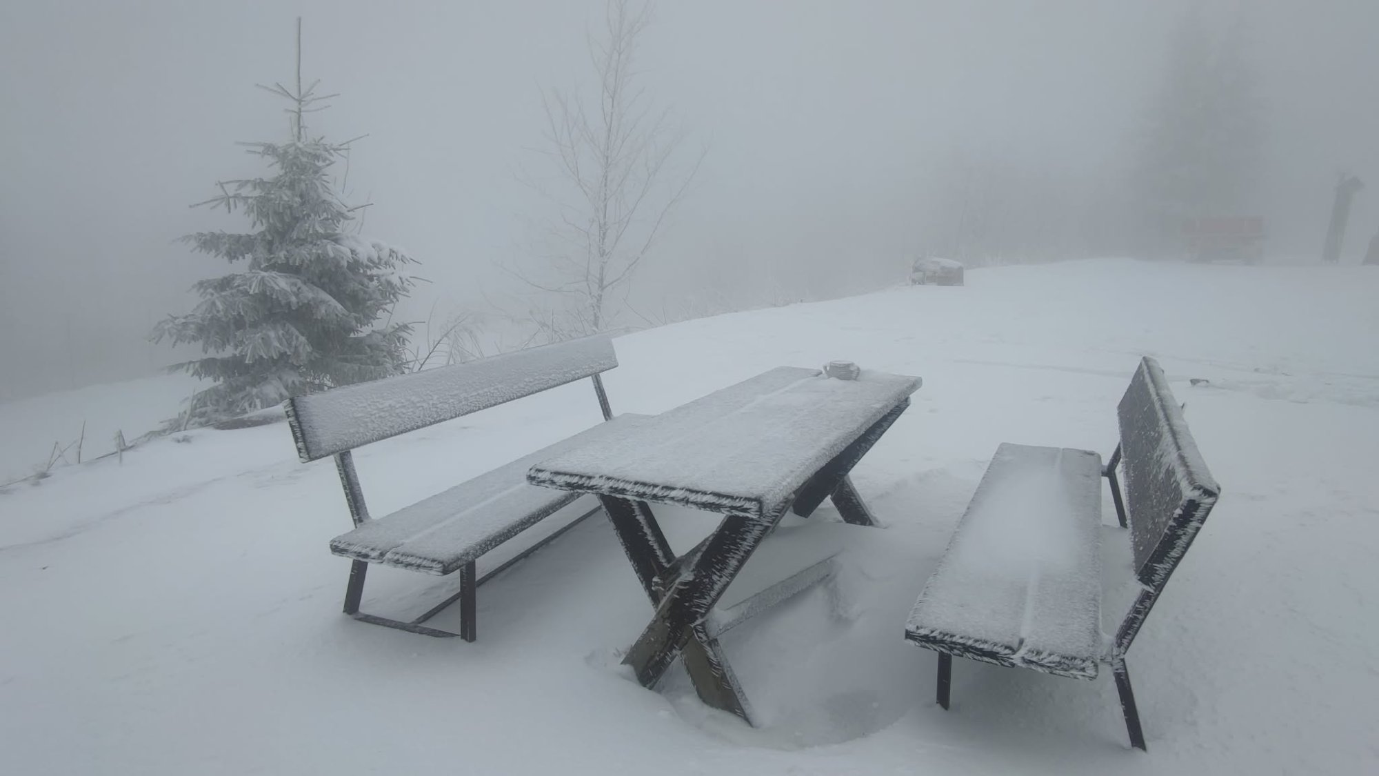 Horský hotel Kozubová (Milíkov) v Beskydech - vrátila se zima, při mlze se tvoří i námraza