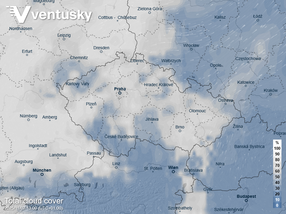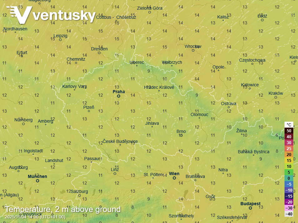 Očekávané teploty v úterý odpoledne - budou nad 10 °C