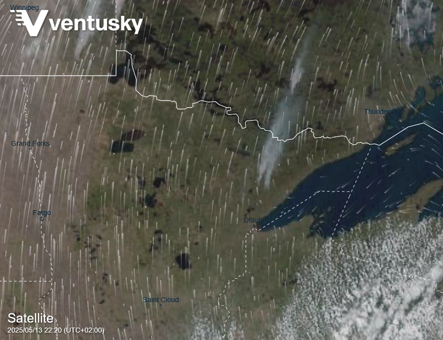 Požáry v okolí města Brimson na satelitním snímku z úterý odpoledne
