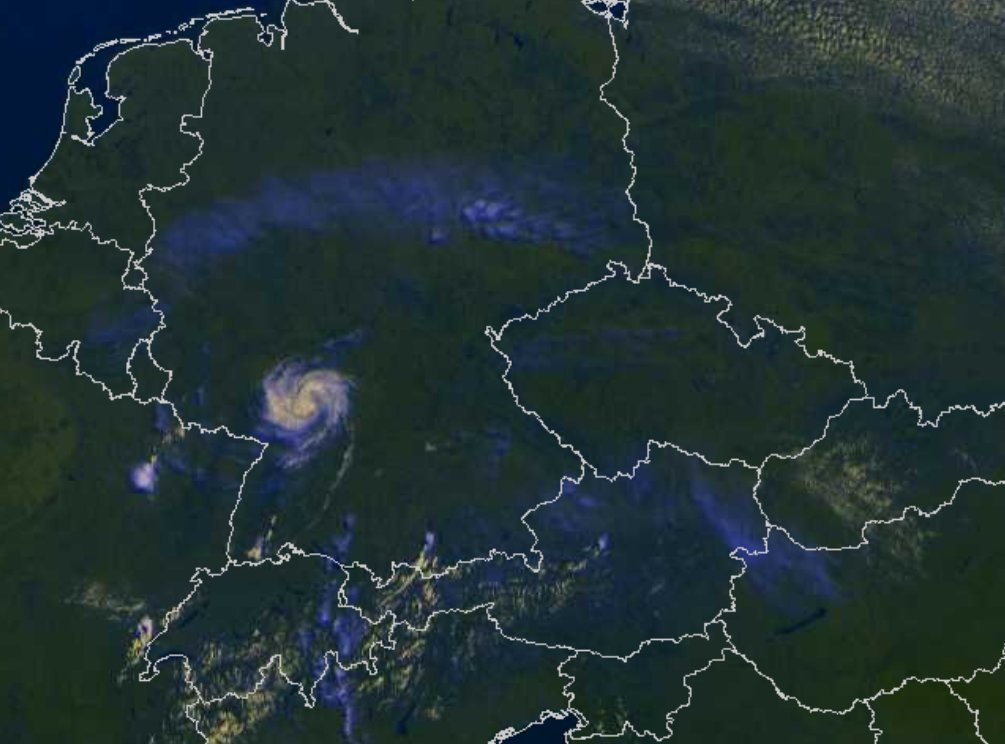 Nad Německem se dnes vyskytl ukázkový mezoměřítkový konvektivní vortex