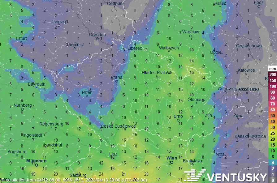 Očekávaná výška nulové izotermy (hranice, od které mrzne) v pátek ráno - hlavně na západě Vysočiny a jihu Čech klesne hranice mrazu až do středních poloh, naopak v Beskydech nebude mrznout ani na hřebenech