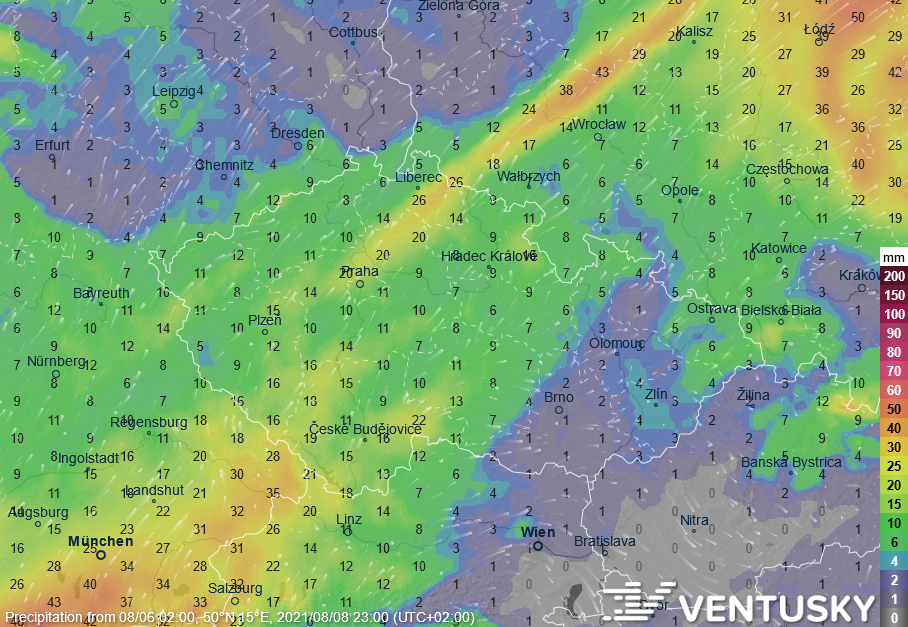 Na Moravě a ve Slezsku spadlo často přes 50 mm srážek