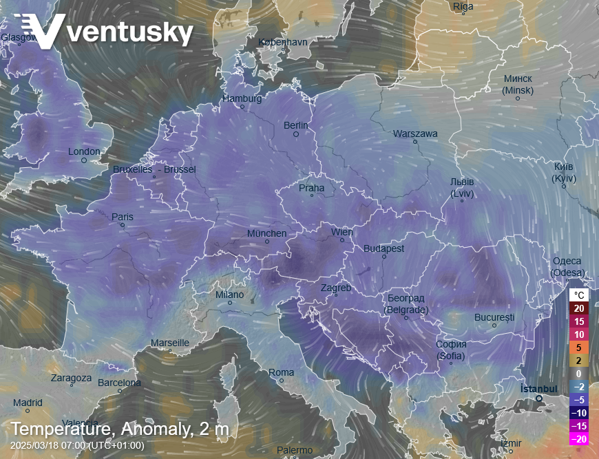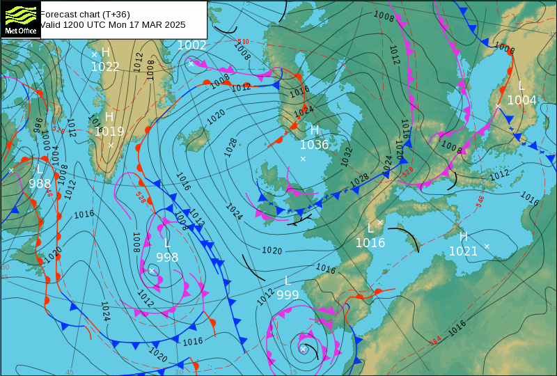 Synoptická situace v pondělí - přes naše území přejde studená fronta