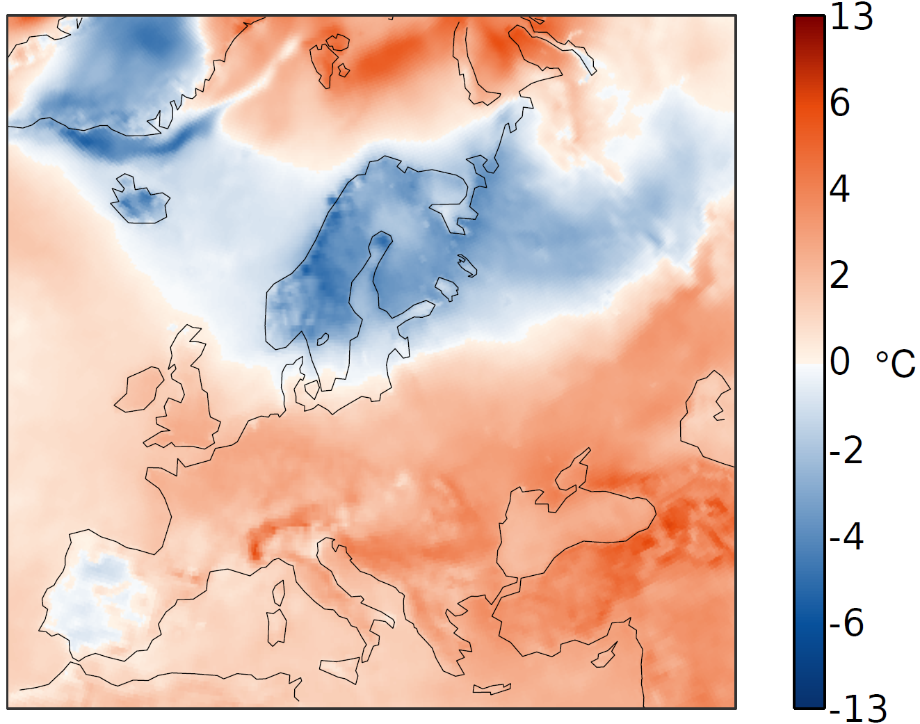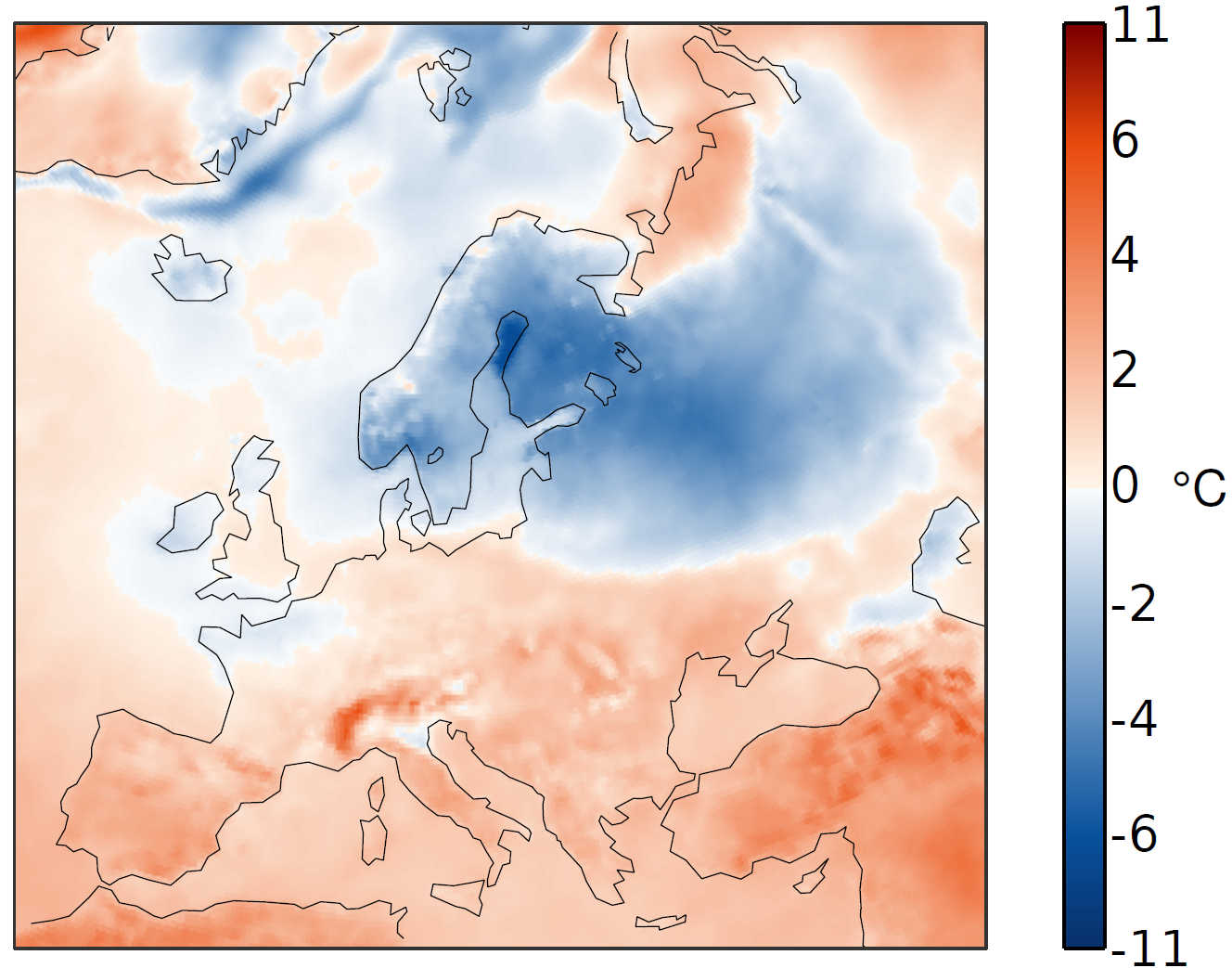 Teplotní odchylka v Evropě v lednu 2024 - Skandinávie a Rusko zažili chladný leden