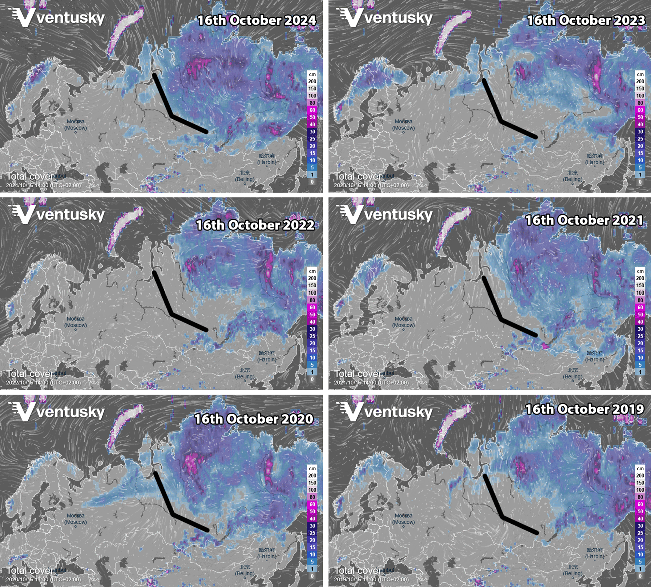Rozsah sněhové pokrývky na Sibiři je nyní nadprůměrný, ovlivní to i nadcházející zimu u nás