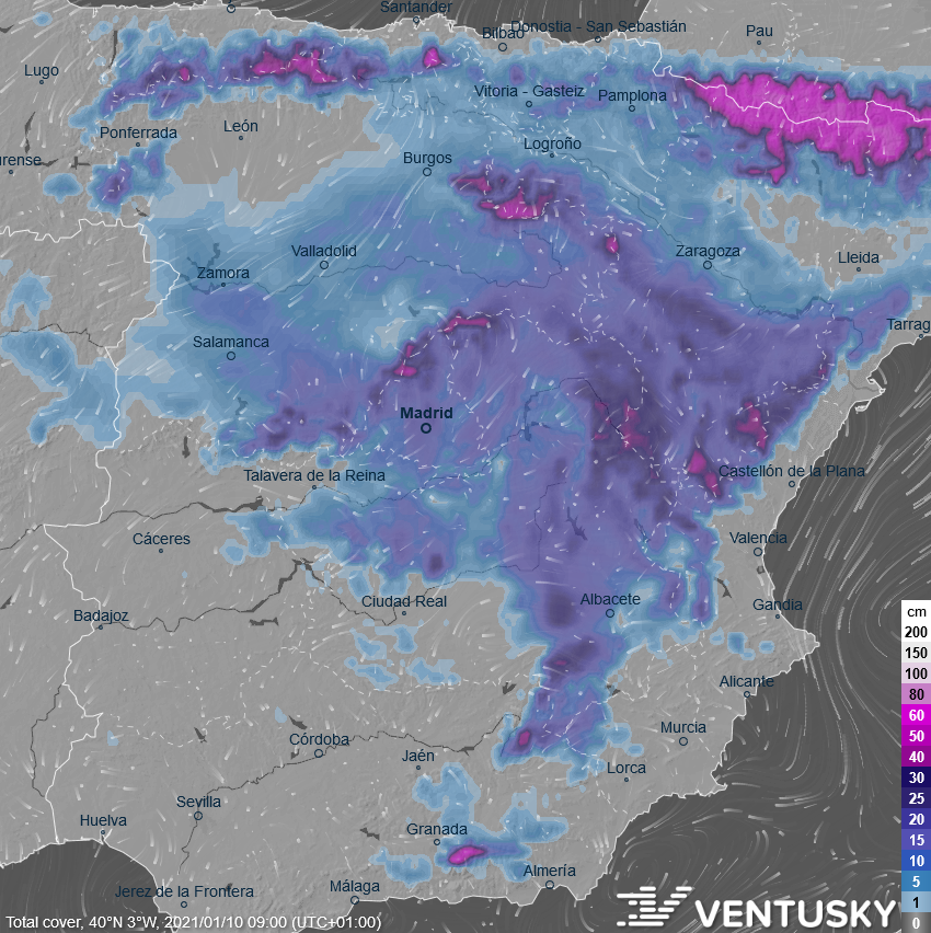 Očekávaná sněhová pokrývka ve Španělsku v neděli ráno - polovina země bude pod sněhem