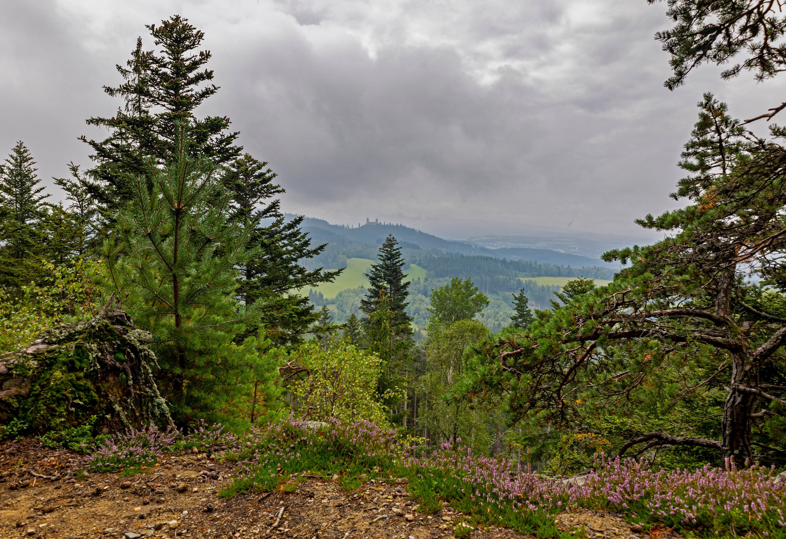 Hrad Kašperk s mohutnou oblačností v pozadí