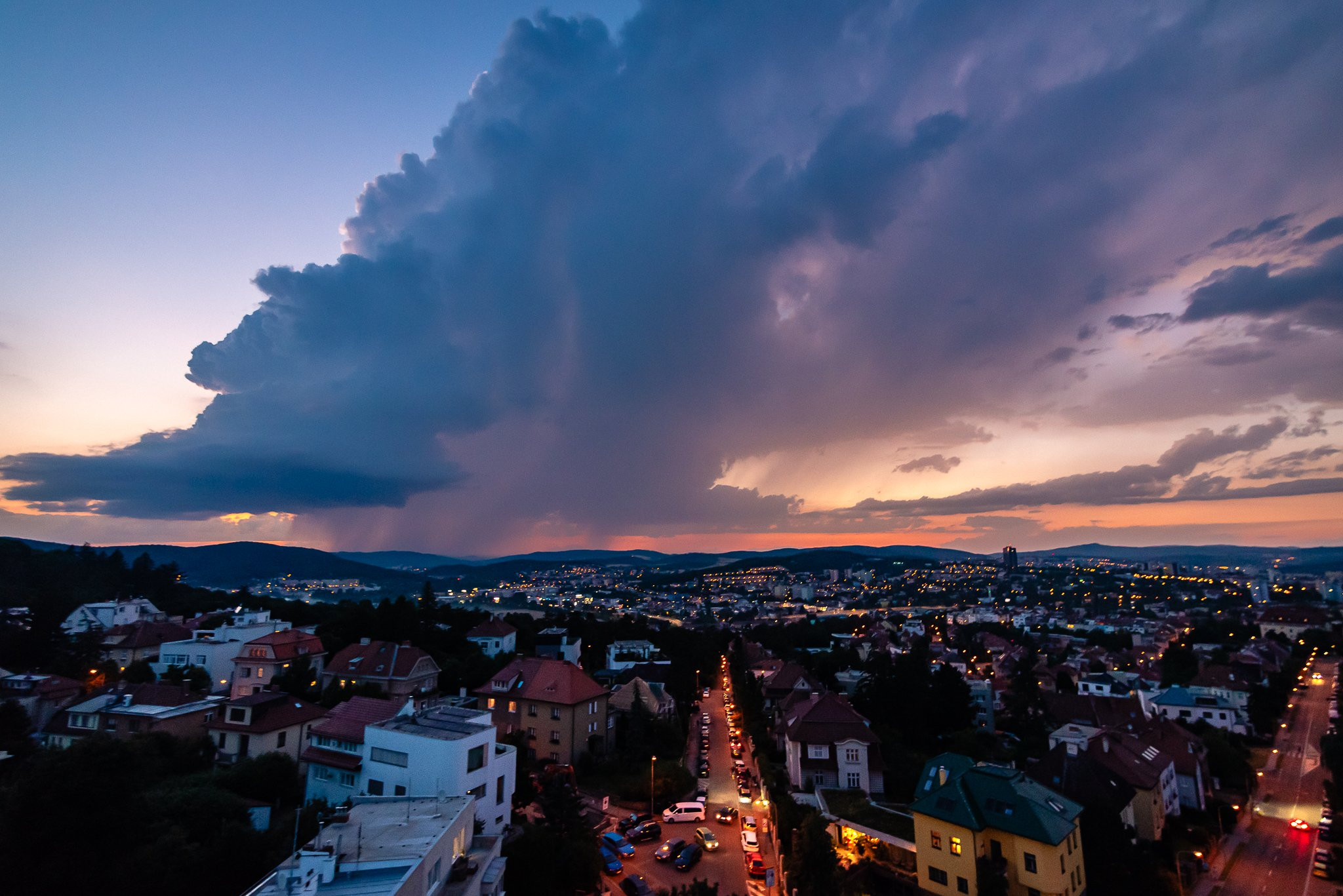 Přicházející bouře. Foceno z kostela na náměstí Míru, Brno.