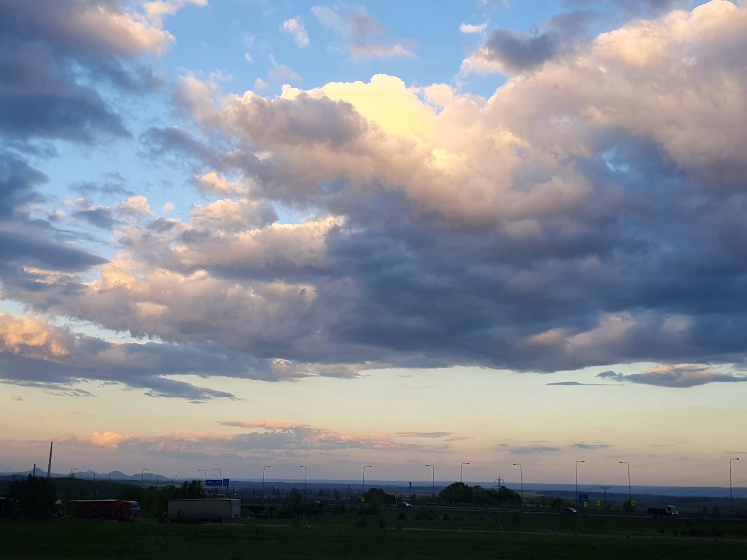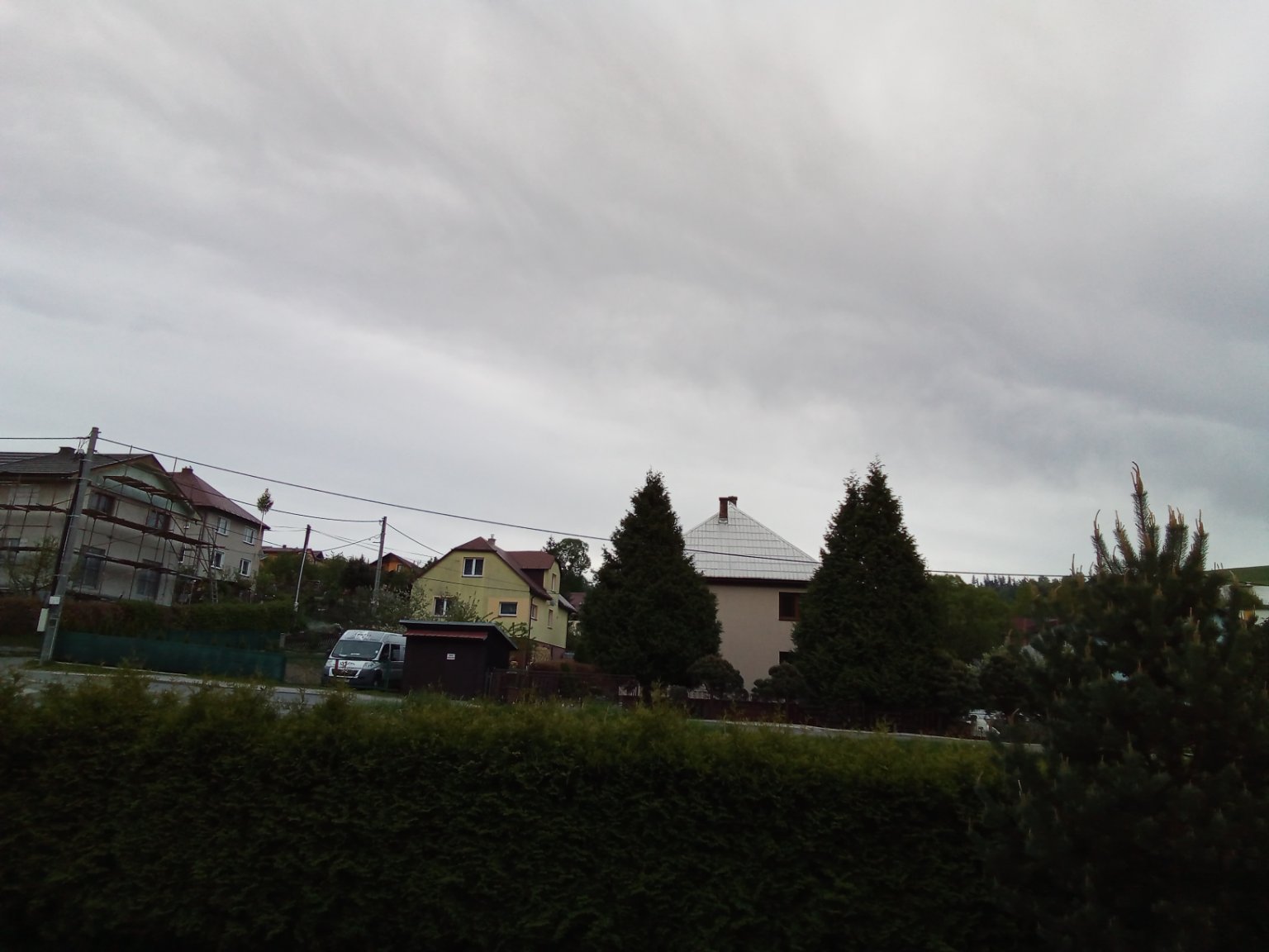 13,5°C, Skoro jasno. Konečně oblačnosti ubylo, dneska to na Z ČR bylo zajímavé, tu ani zajímavá oblačnost natož nějaka přehaňka...