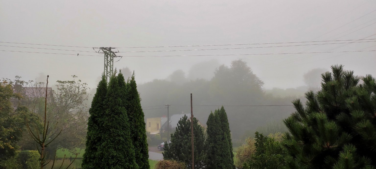 Zataženo. Nárazový vítr. Vlhkost 86%. Min T dnes 9,5°C. Srážky včera a dnes celkem 18 mm