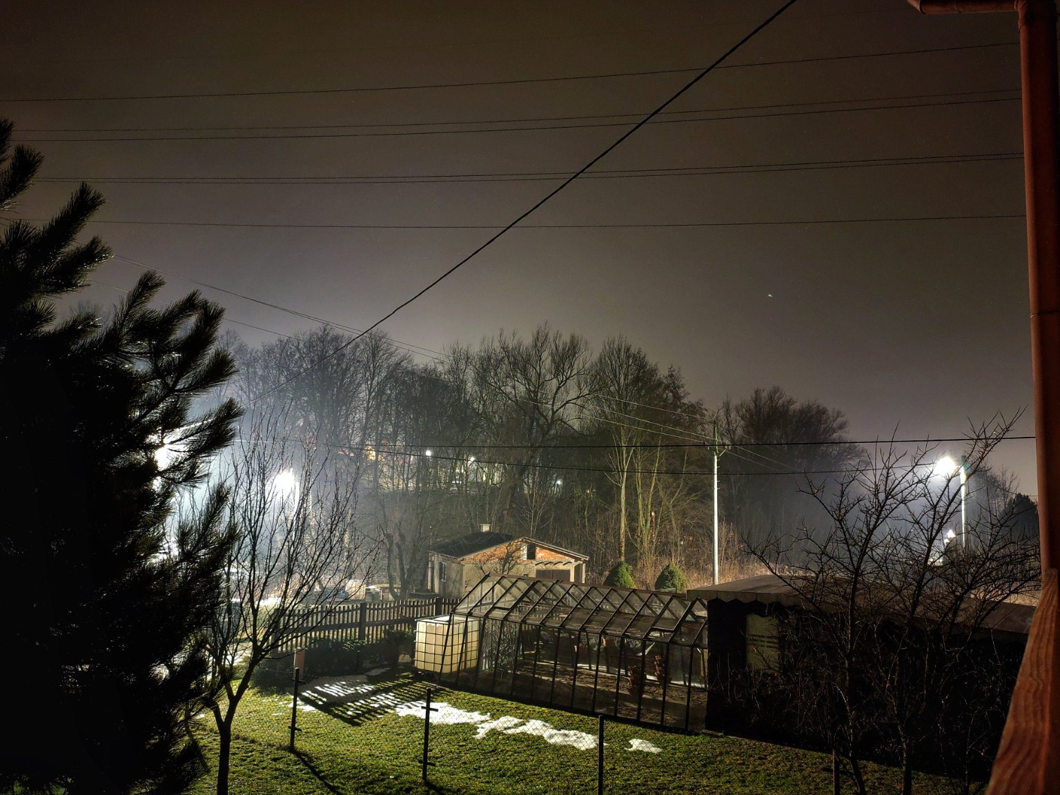 slabý déšť a mlha, námraza ze stromů je pryč, 0.5°C