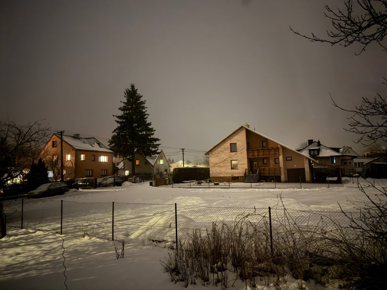 odpoledne bylo i chvíli oblačno až polojasno, teď skoro zataženo, sníh pomalu odtává, 4°C