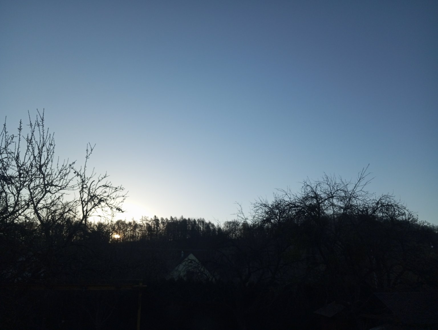 0,4°C, Polojasno až oblačno. Nemrzne, pěkné mraky nad kopcama..