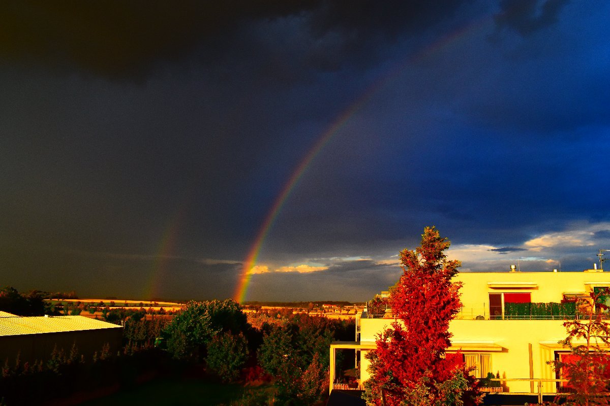 Dnes byla celý den proměnlivá oblačnost, vyskytlo se i několik přeháněk. Měřitelné srážky se vyskatly pouze v jedné z nich s úhrnem 1,6 mm. Je bezvětří, tlak: 1016 hPa. Foto zachycuje večerní oblohu nad nedalekou obcí Buk.