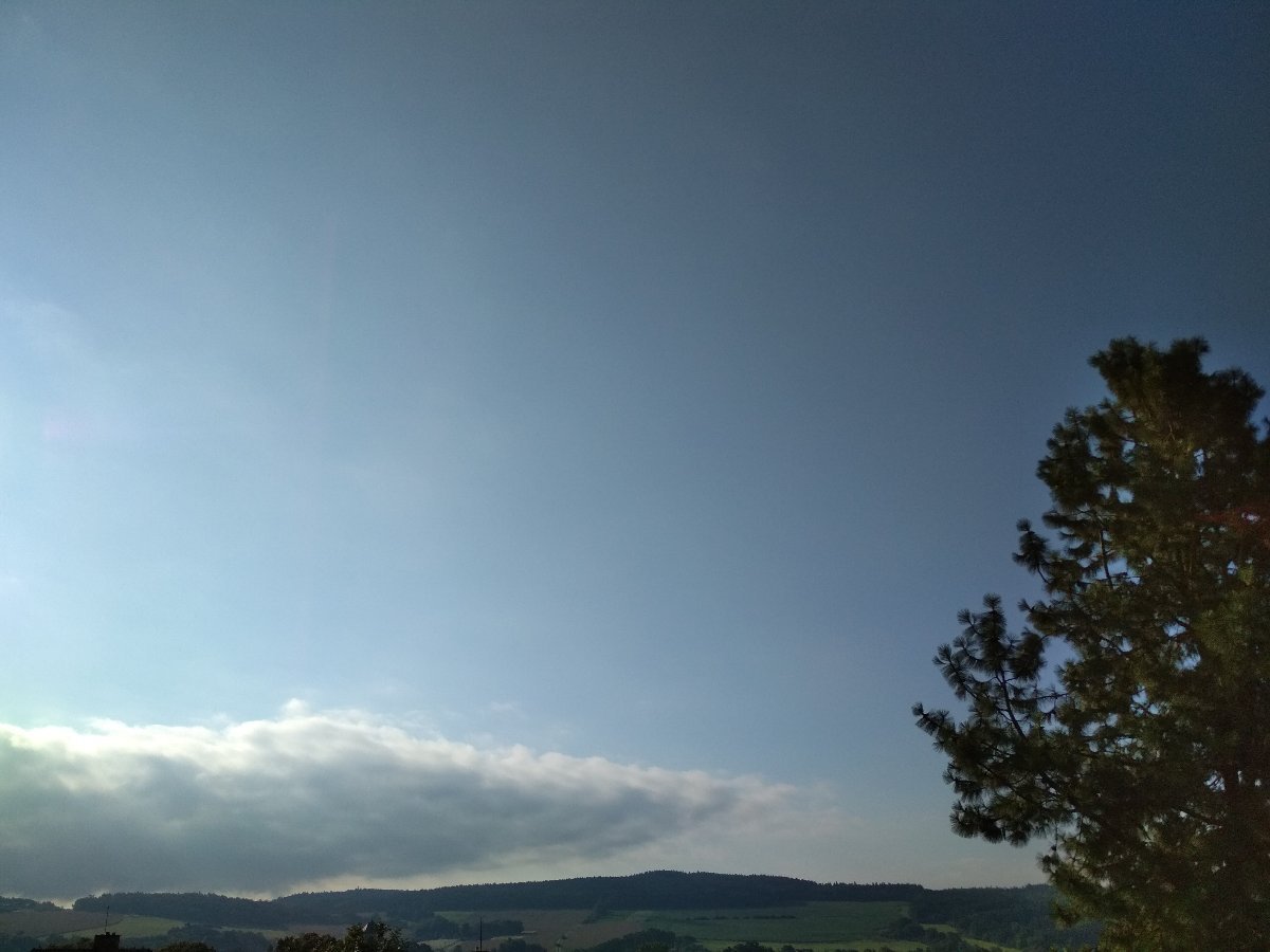 Oblačnost 0,9%, zákl.oblačnosti 1501,19m.n.m., tlak 1019,2hPa→, dohlednost 45km, rel.vlhkost 72,3%, abs.vlhkost 8,41g/m3, JJV větřík 155° 2,6m/s(2 Bft), poc.teplota 11,23°C, wind chill 11,85°C, tepl.ros.bodu 8,48°C, tepl.mraků 5,75°C, HUMIDEX 14,01°C, délka dne u nás = 16hod.11min.25vt.(67,46%dne), včerejší průměrná teplota = 14,23°C.