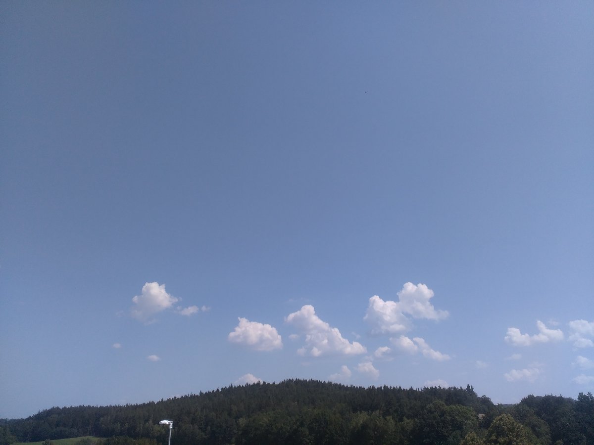 Aktuálně z Brna Černovic. V dáli vývoj kupovité oblačnosti. Směr západ.
