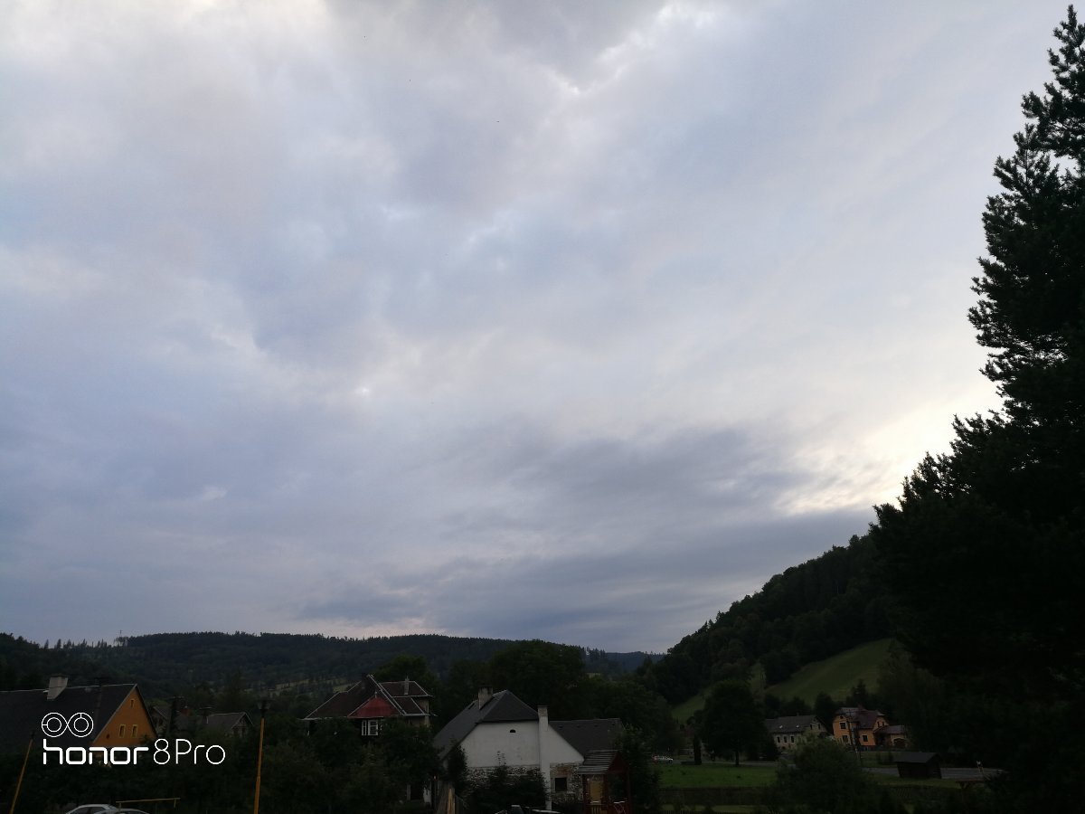 Zamračené, slabý až mierny dážď, búrka.