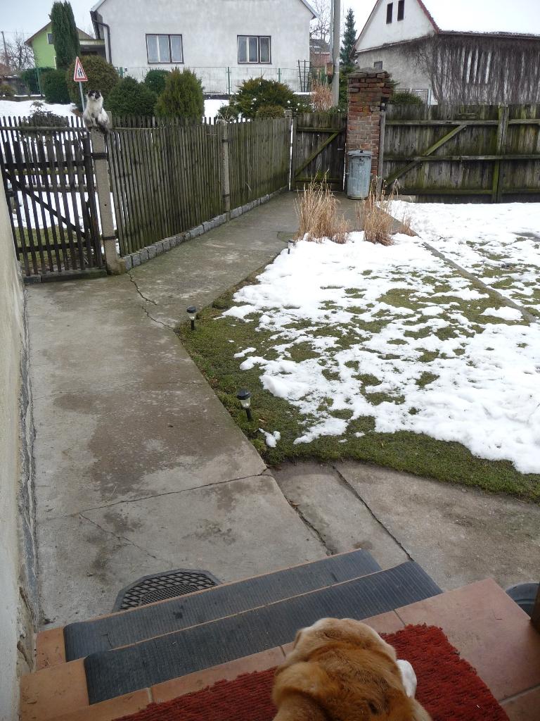 Zataženo, dopoledne přestalo sněžit. Sníh začíná místy jen pozvolna tát.