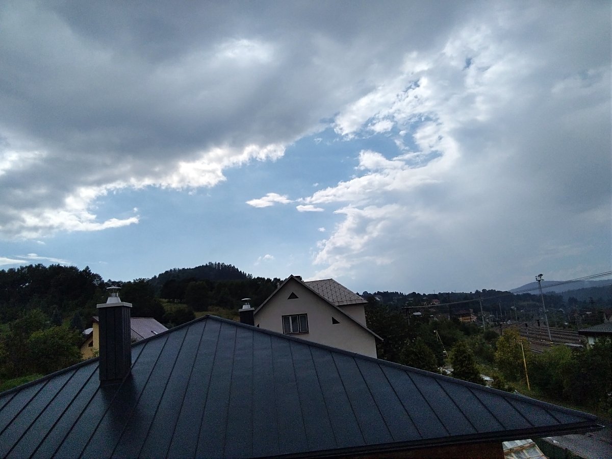 Okolo přechází bouřka,slabý,v nárazech mírný vítr,tlak 1020 hPa
