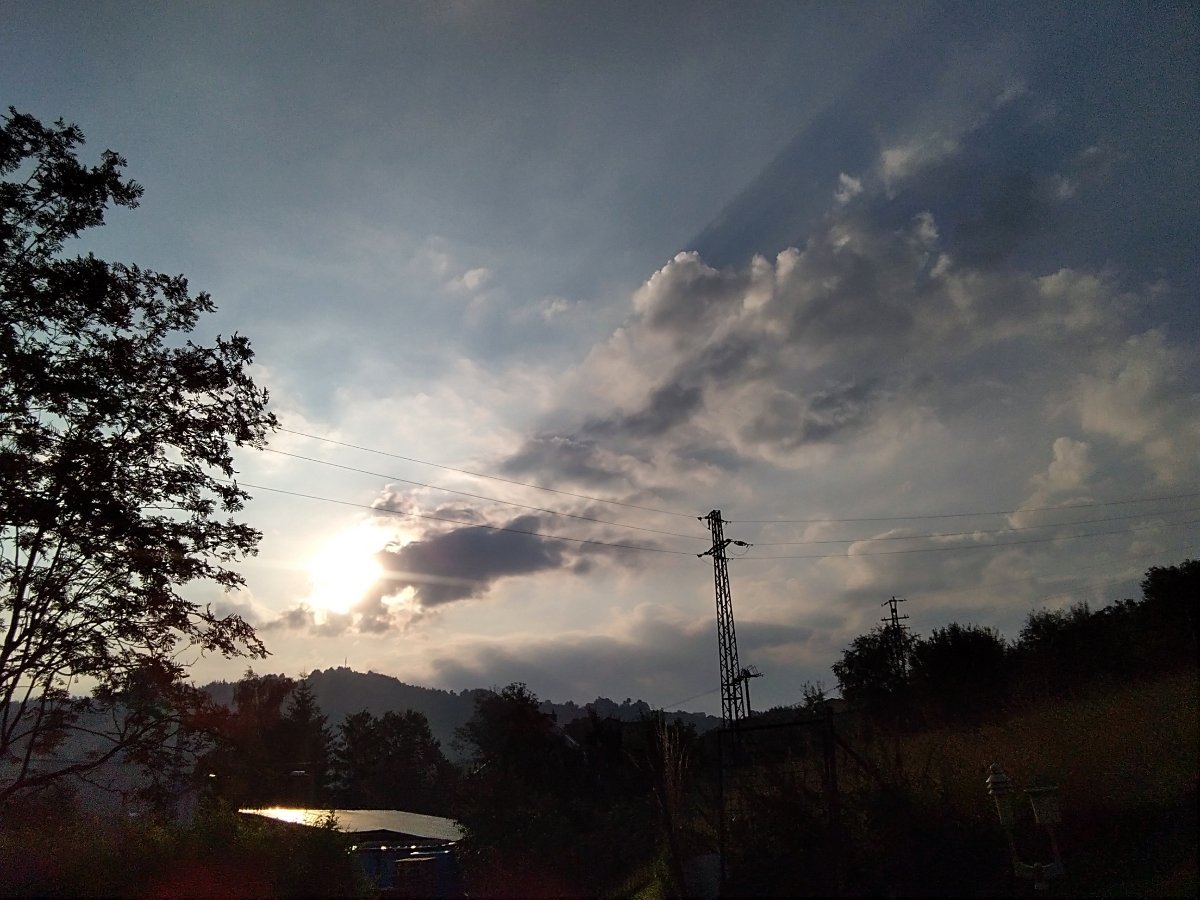 2018 07 25 v 07:05:14 sluníčko hřeje +19°, objevují se na obzoru mraky