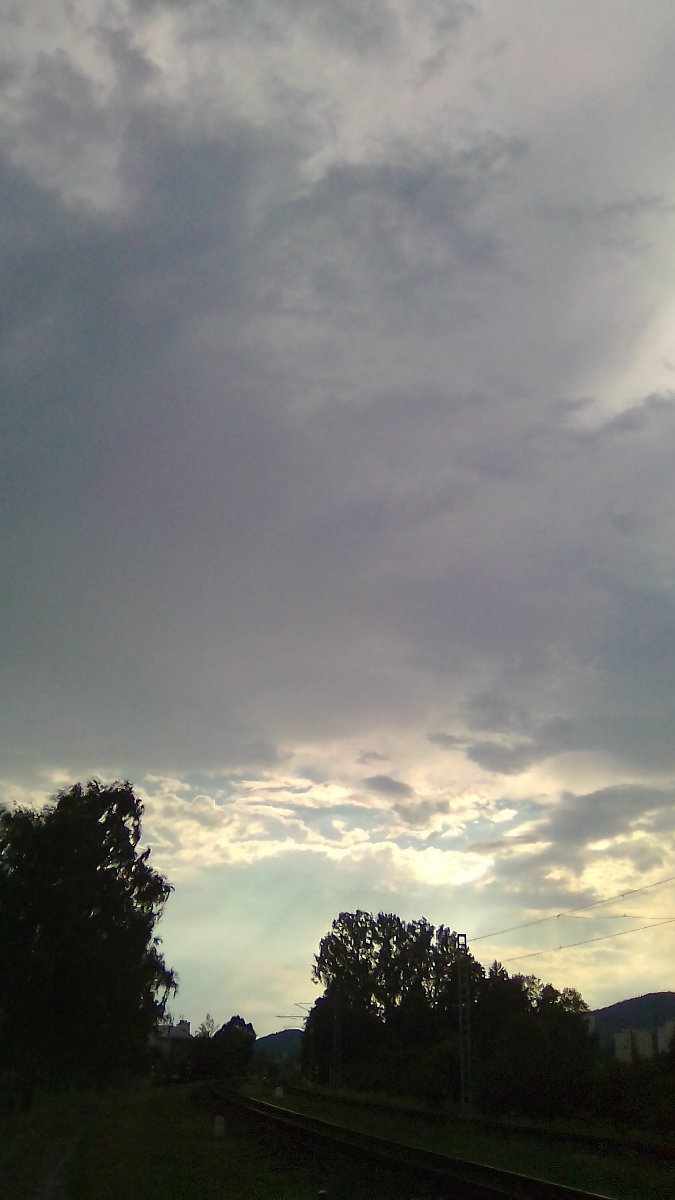 Oblačno až skoro zamračené, búrka, bez zrážok.