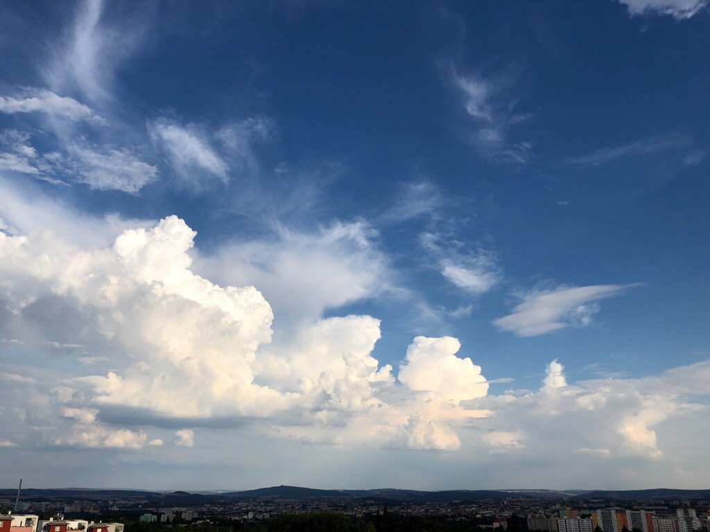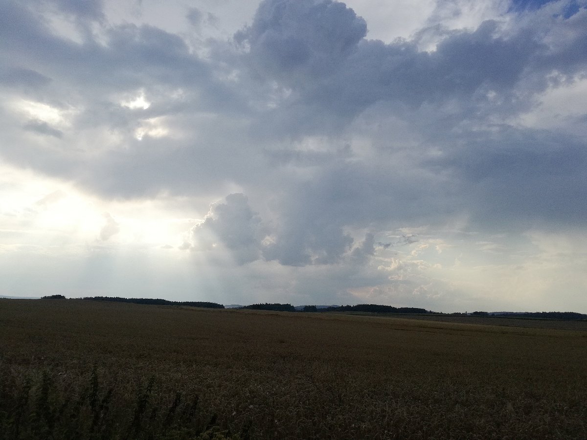konečně bouřka, alespoň okrajem, další pěkná přeháňka, do toho svítí sluníčko a objevila se duha
