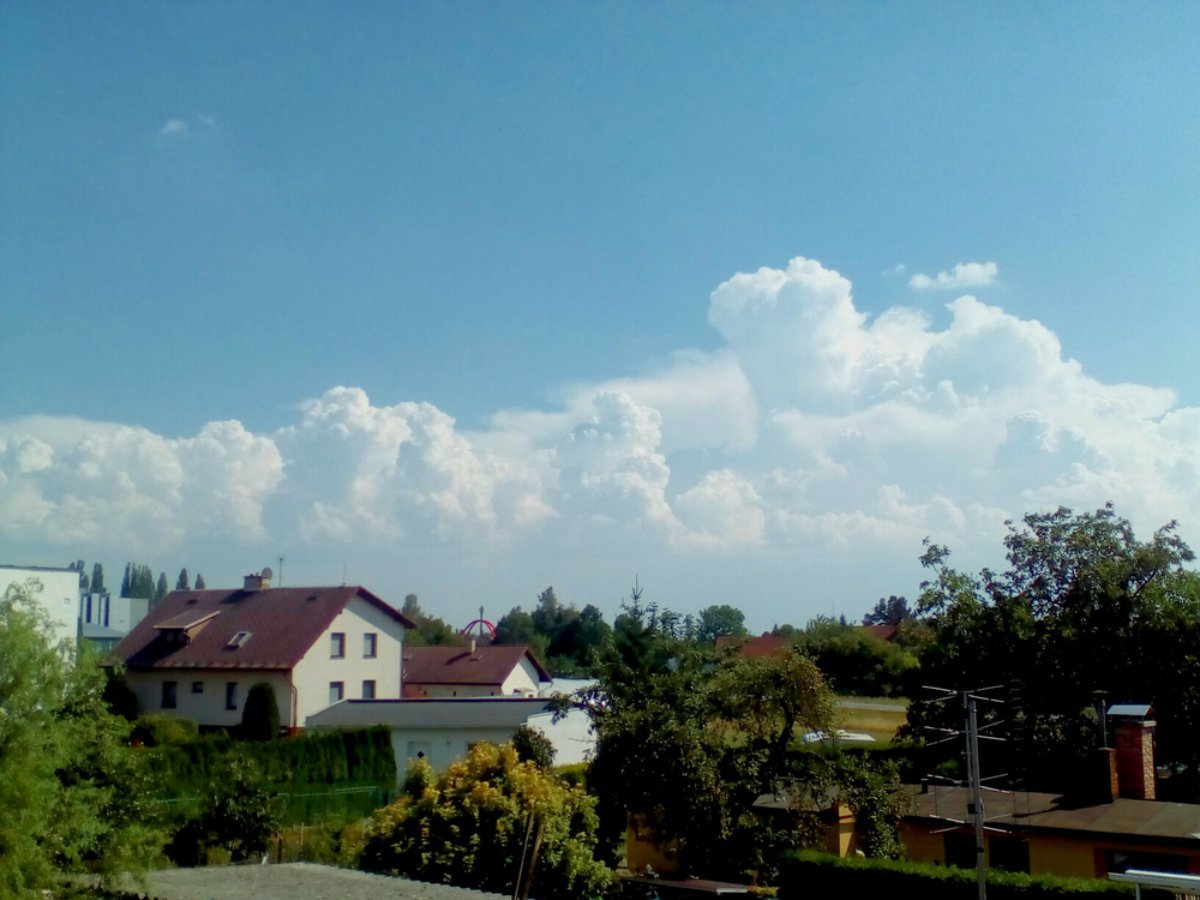Bouřka, oblačnost 98,4%, zákl.oblačnosti 965,94m.n.m., tlak 1019,1hPa▲, dohlednost 20km, rel.vlhkost 86,6%, abs.vlhkost 15,53g/m3, slabý SSZ vítr 344° 4,2m/s(3 Bft), poc.teplota 20,56°C, wind chill 18,07°C, tepl.ros.bodu 18,27°C, tepl.mraků 16,52°C, HUMIDEX 26,70°C, ozon 296D.U.(-12%,extrémně podprůměrný stav).