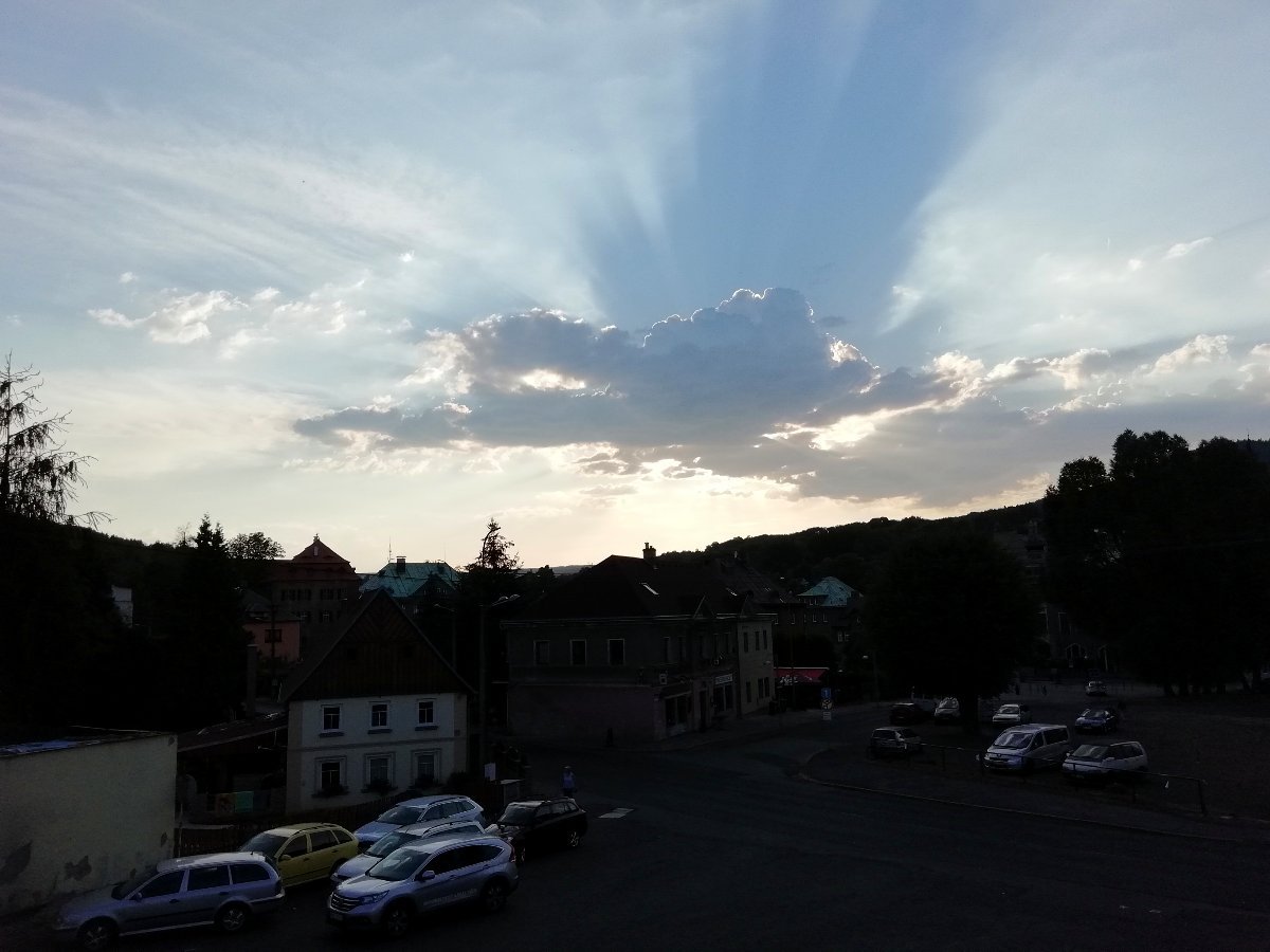 po dešťové přeháňce, vytvořila se i malá duha, 28°C