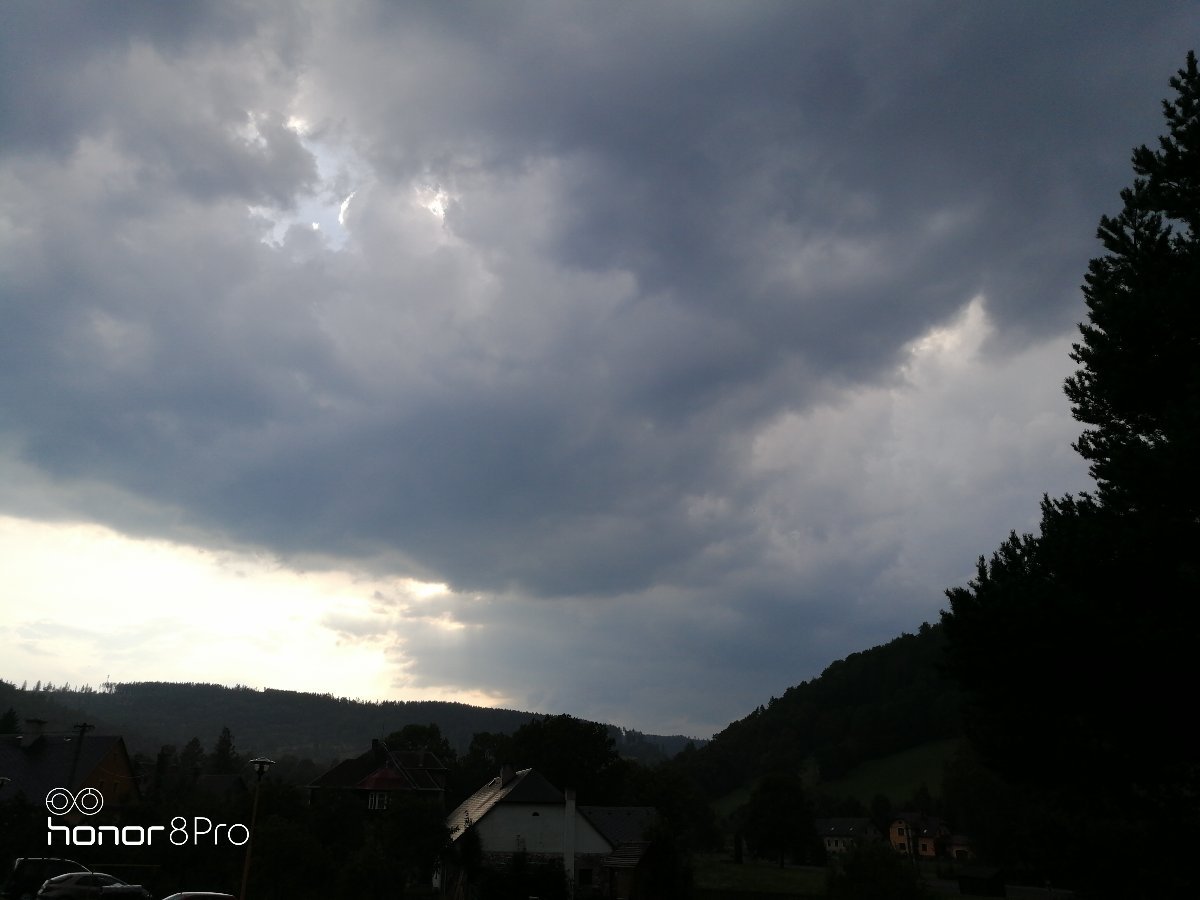 vzdálená bouřka v dáli hřmí, 30°C