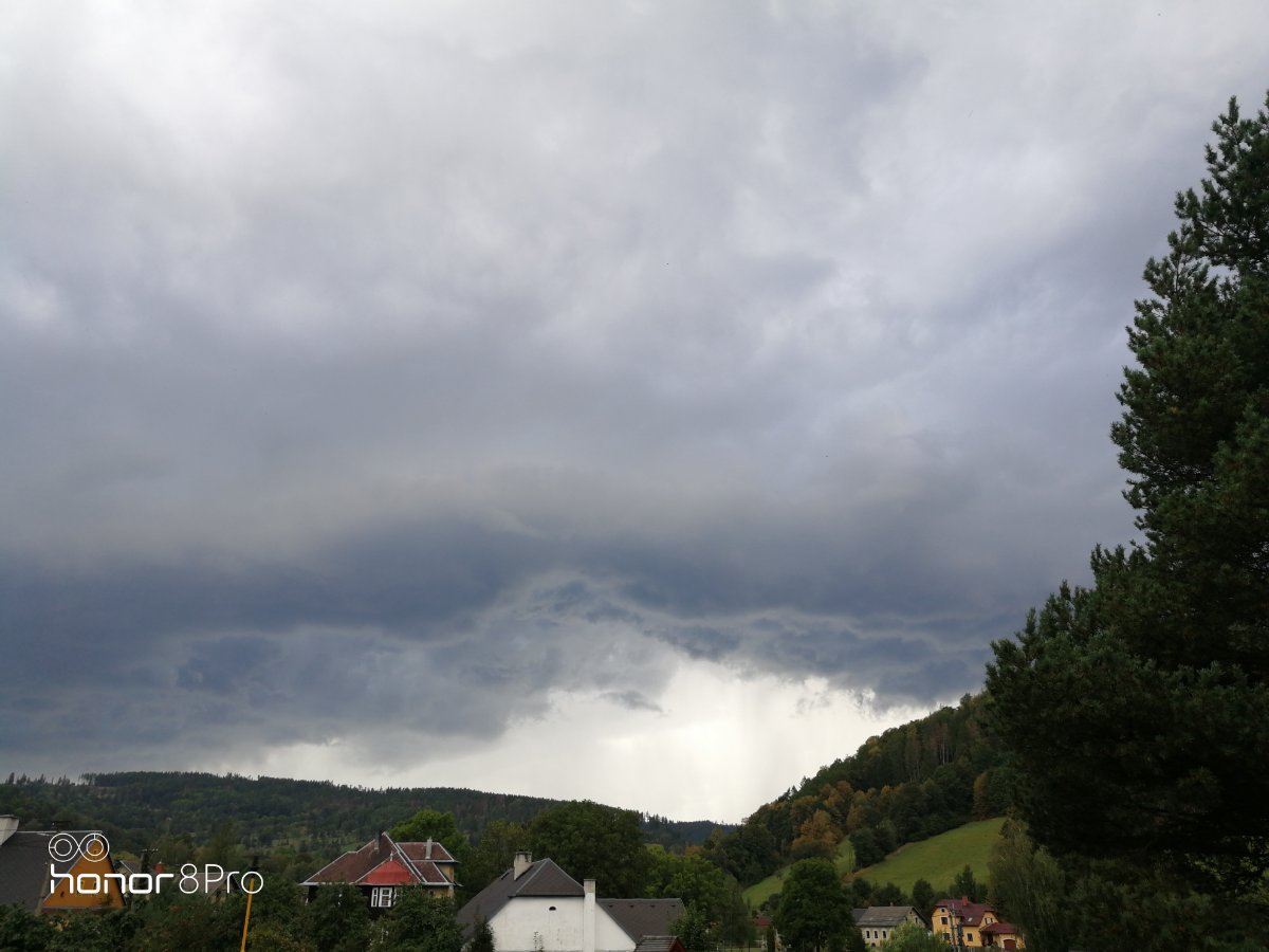 skoro zataženo, beze srážek, slabý až mírný vítr, 21.5°C