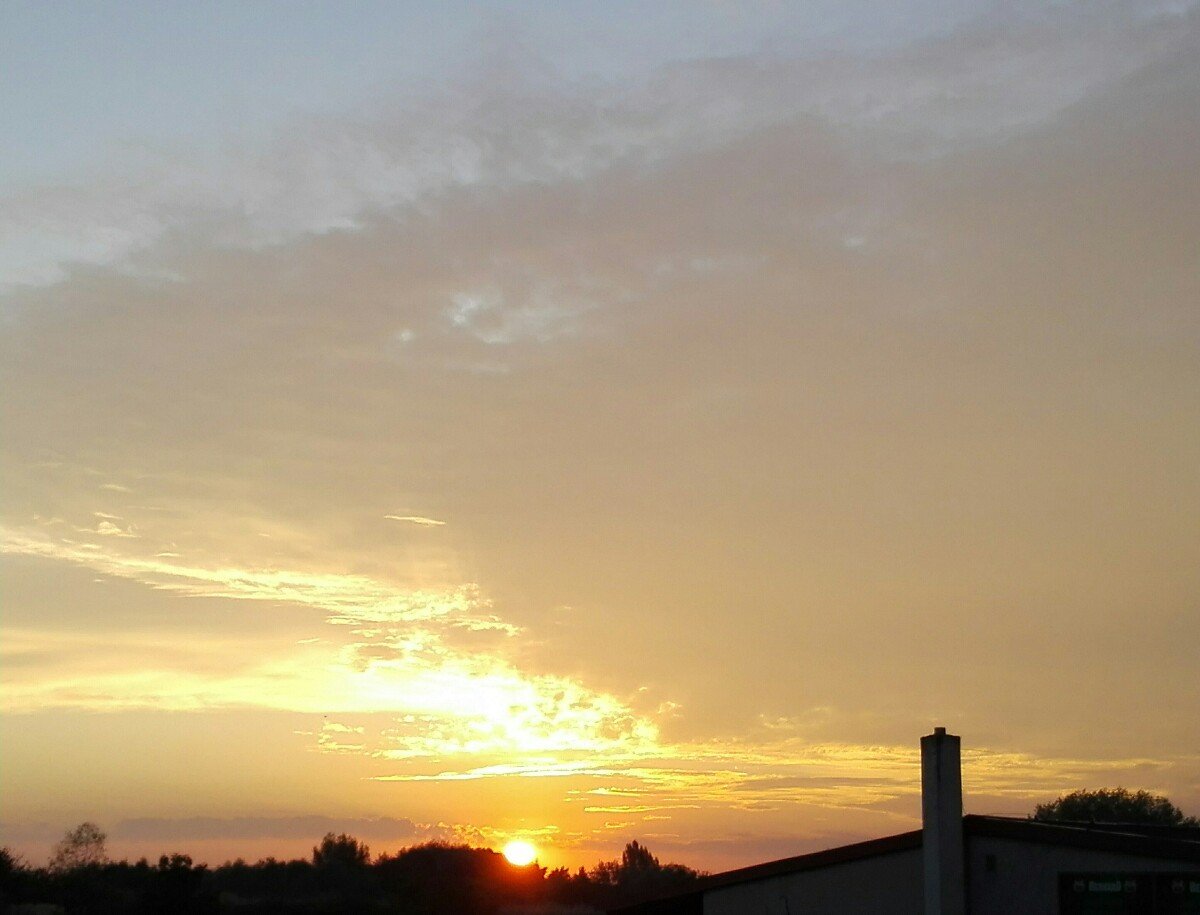 Skoro jasno. Bezvětří, tlak 1016,4 hPa, vlhkost 93%. Na fotografii je aktuální bouřka na severu Vysočiny.