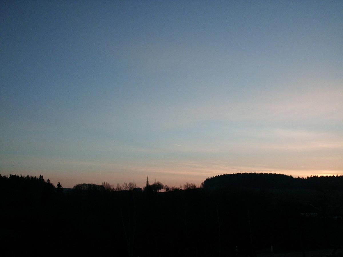 Skoro jasno, čerstvý východní vítr, tlak 1012 hPa. Slunce právě vyšlo.
