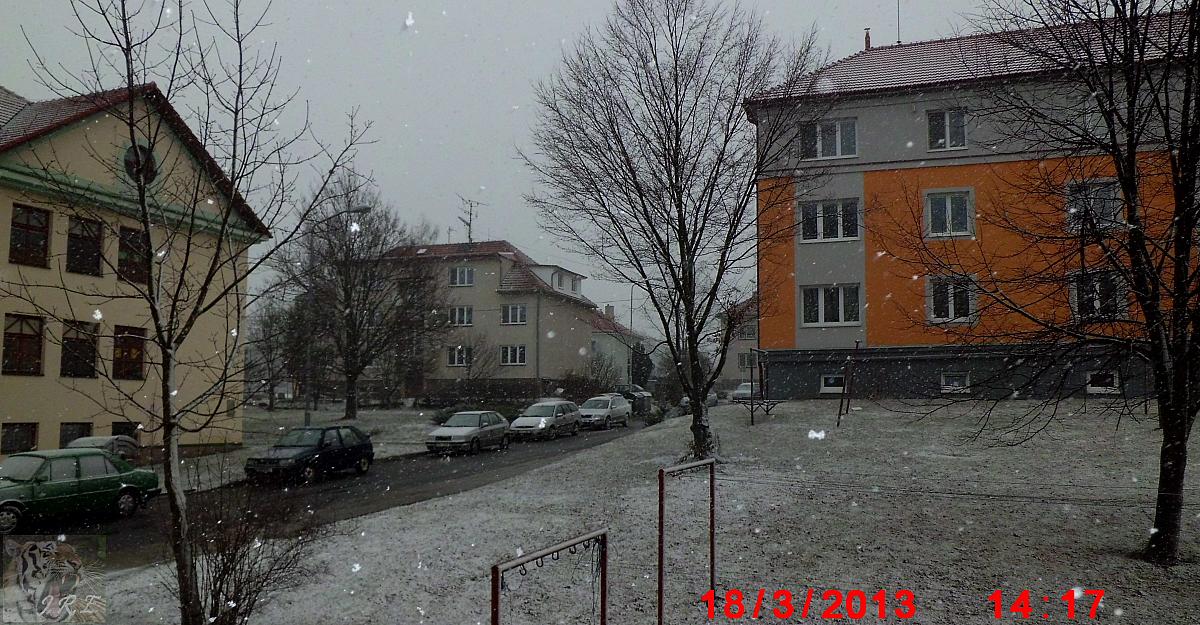 ve 12 hodin bylo pod mrakem a +6° a nyní je počasí, že by psa nevyhnal - ten náš si v tom právě libuje foto z 2013 03 18 v 13:52