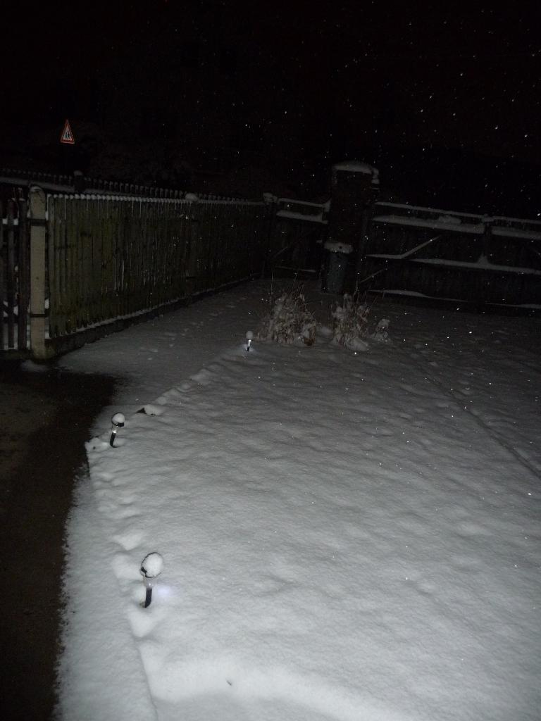 Tlak 988 hPa !!! Přes den napadlo 25-30 cm sněhu, vítr to ještě zpestřil. Ten sníh je ale zvláštní. Nemrzlo, ale sníh vůbec nelepí. Při snaze vyrobit sněhuláka se koule okamžitě rozpadaly. Větší uplácané rádoby sněhuláčí koule jsou lehké jak vata.