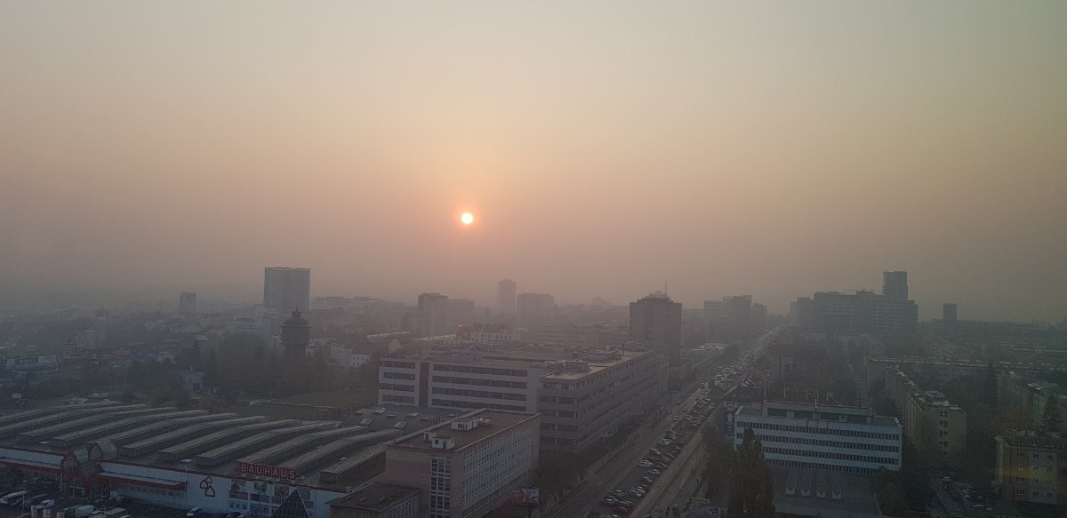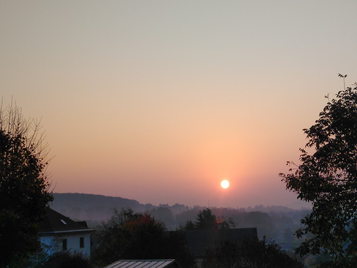 Slunce se snaží prodrat mlhou. Opět to značí pěkný den. Je bezvětří.