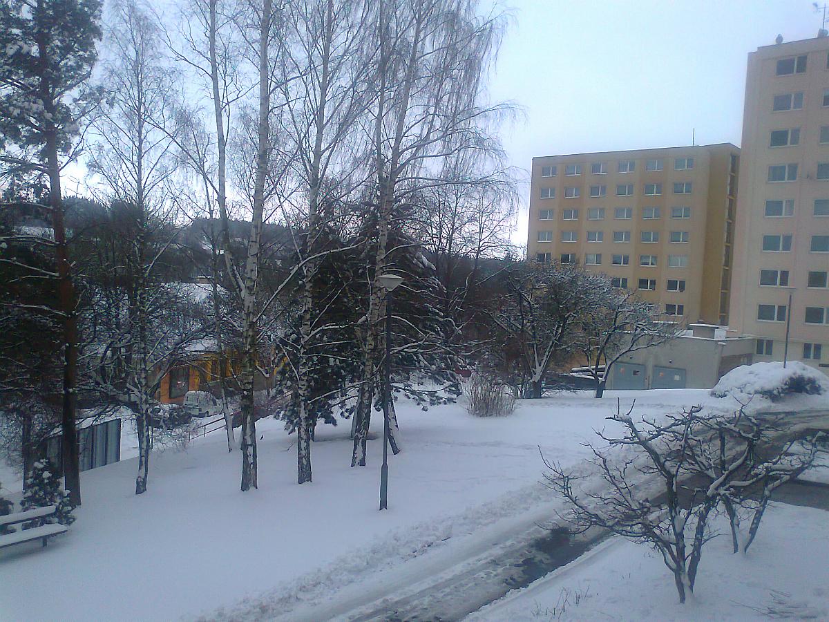 Z raní souvislé pokrývky přechod k pořádné oblevě. Na některých místech se objevují holá místa bez sněhu. Teplota stoupá a mezi mraky se občas objeví skulinka s modrým nebem a vysvitne sluníčko :)