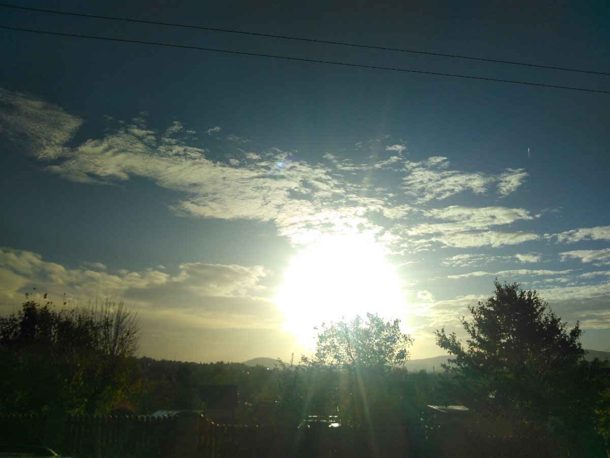 Silný vítr už není tak silný jako v noci ale stále je čerstvý fouká od jihovýchodu a východu a aktuálně je jasno a teplo ale v dálce na východ jsou nějaké mraky