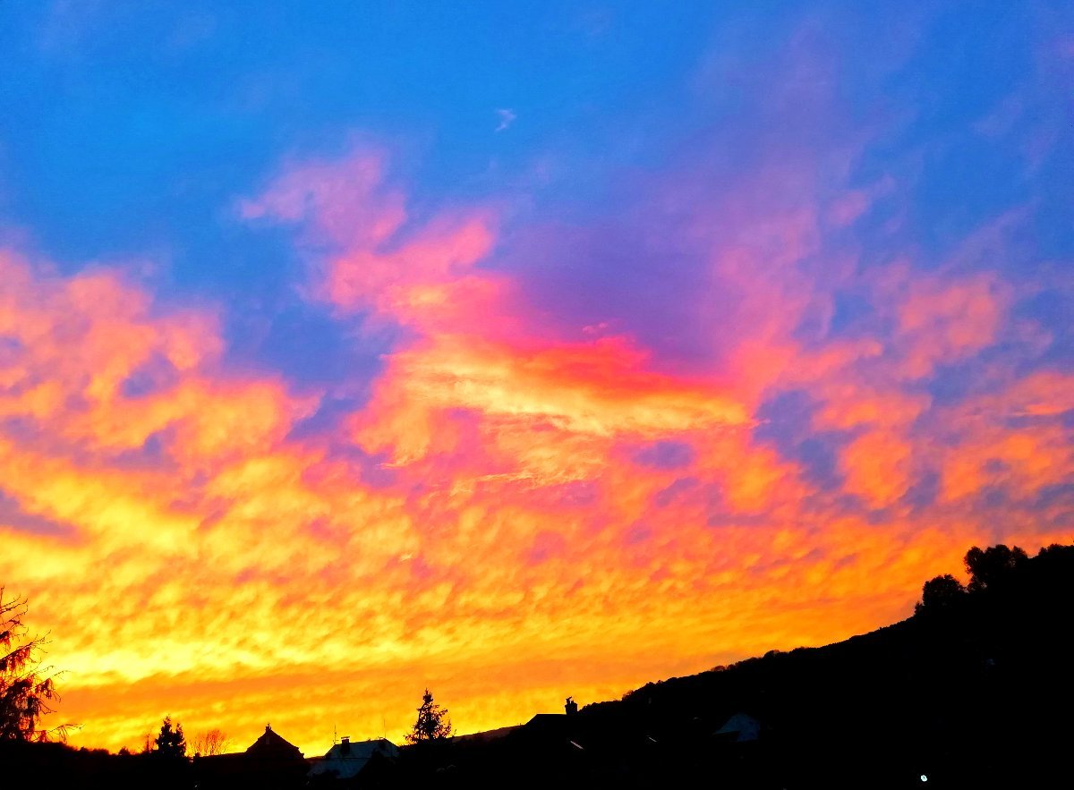 Vítr i když předpovídali že bude silný,byl docela slabý sice v nárazech přesahoval 30 km/h bez nárazů byl slabý či mírný(max 20 km/h) oblačnost dnes přibívala od jz takže sice ráno svítilo slunce odpoledne a teď převažuje oblačno a zataženo a před 20 min se vytvořili červánky i když bylo zataženo aktuálně se už rozpouštějí