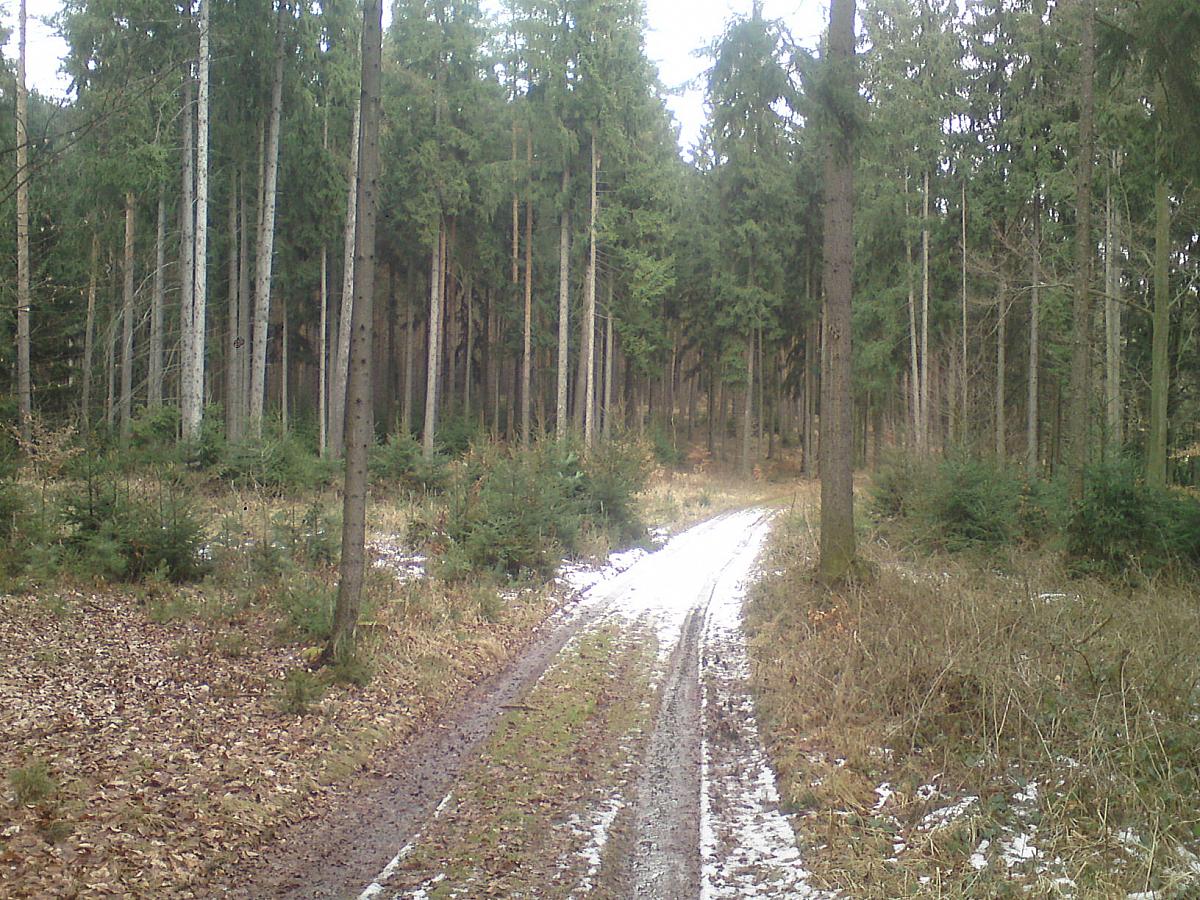 I přes teplý dnešní den jsou některé silnice za městem ještě pod sněhem.