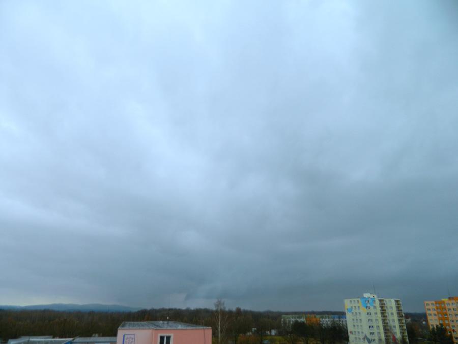 Zataženo, slabě prší, zákl.mraků 222m, tlak 1012,1hPa, dohlednost 8km, vlhkost 93,4%, slabý SZ vítr 321° 2,6m/s(2 Bft).