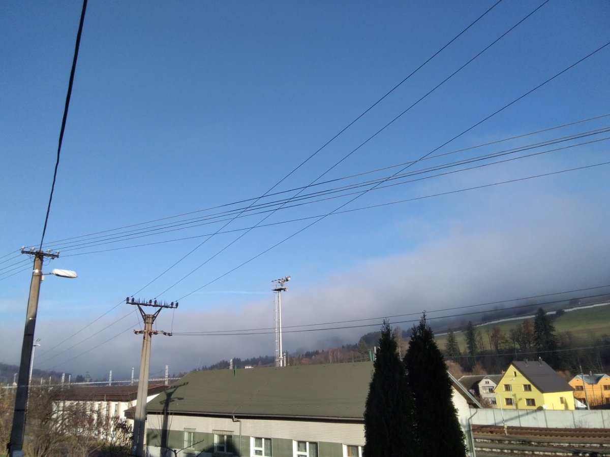 Mlha, oblačnost 42,4%, zákl.oblačnosti 825,51m.n.m., tlak 1020,9hPa→, dohlednost 350m, SV větřík 34° 1,6m/s(2 Bft), poc.teplota 6,27°C, wind chill 7,49°C, tepl.ros.bodu 6,43°C, tepl.mraků 4,93°C, HUMIDEX 8,00°C, délka dne ve Slavičíně = 9hod.42min.38vt.(40,46%dne), včerejší průměrná teplota = 12,44°C.