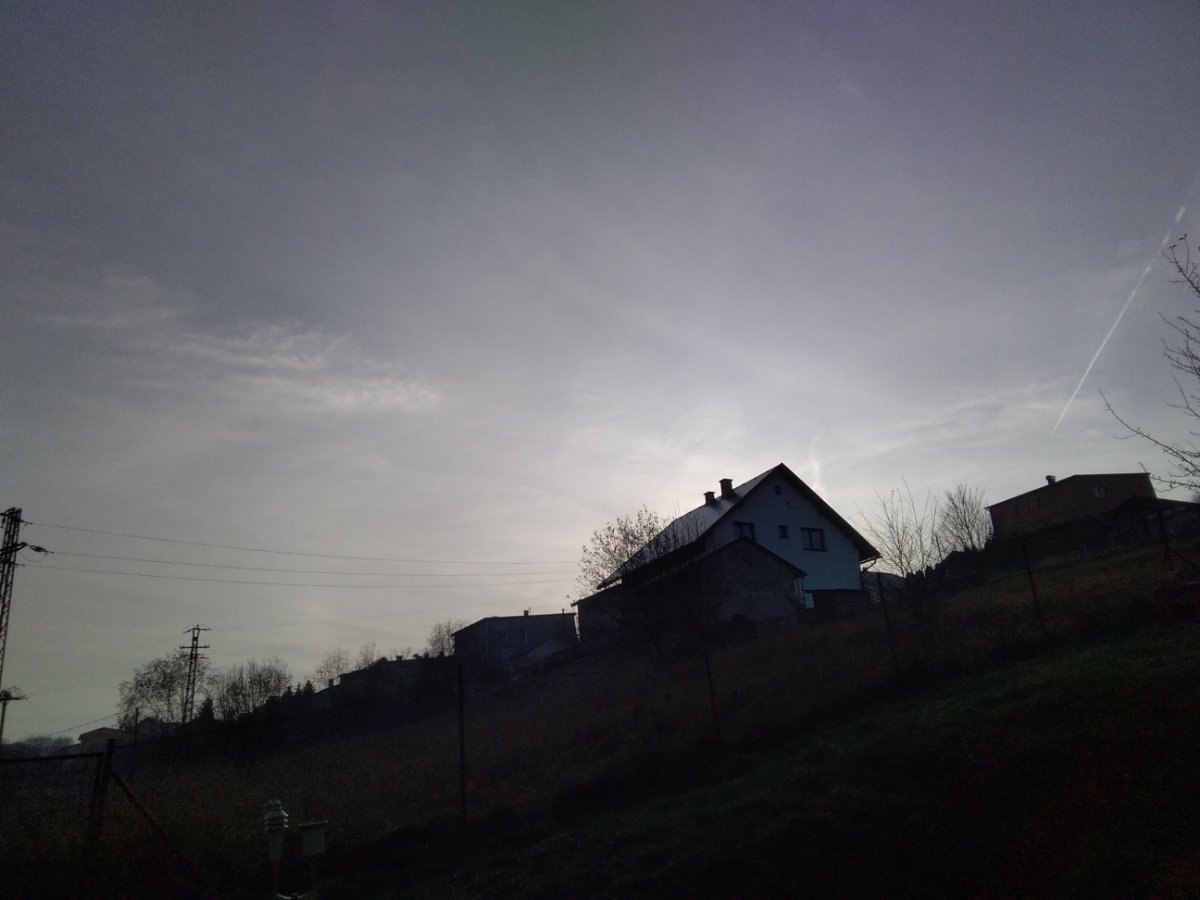 Většinou zataženo nízkou oblačností v dáli se vyskytuje slabá mlha stejné počasí jak včera ráno,je většinou bezvětří vlhkost 89%