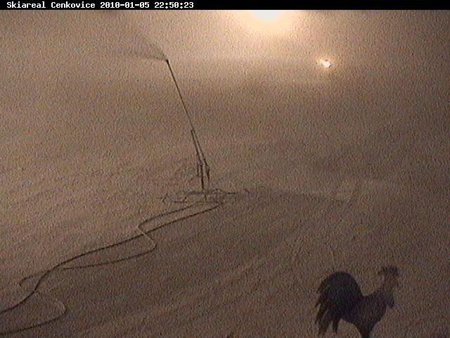 Slabý mrznoucí déšť ze stratu. Odraz stratu neni vidět na radaru takže bude pod zorným polem radaru.
